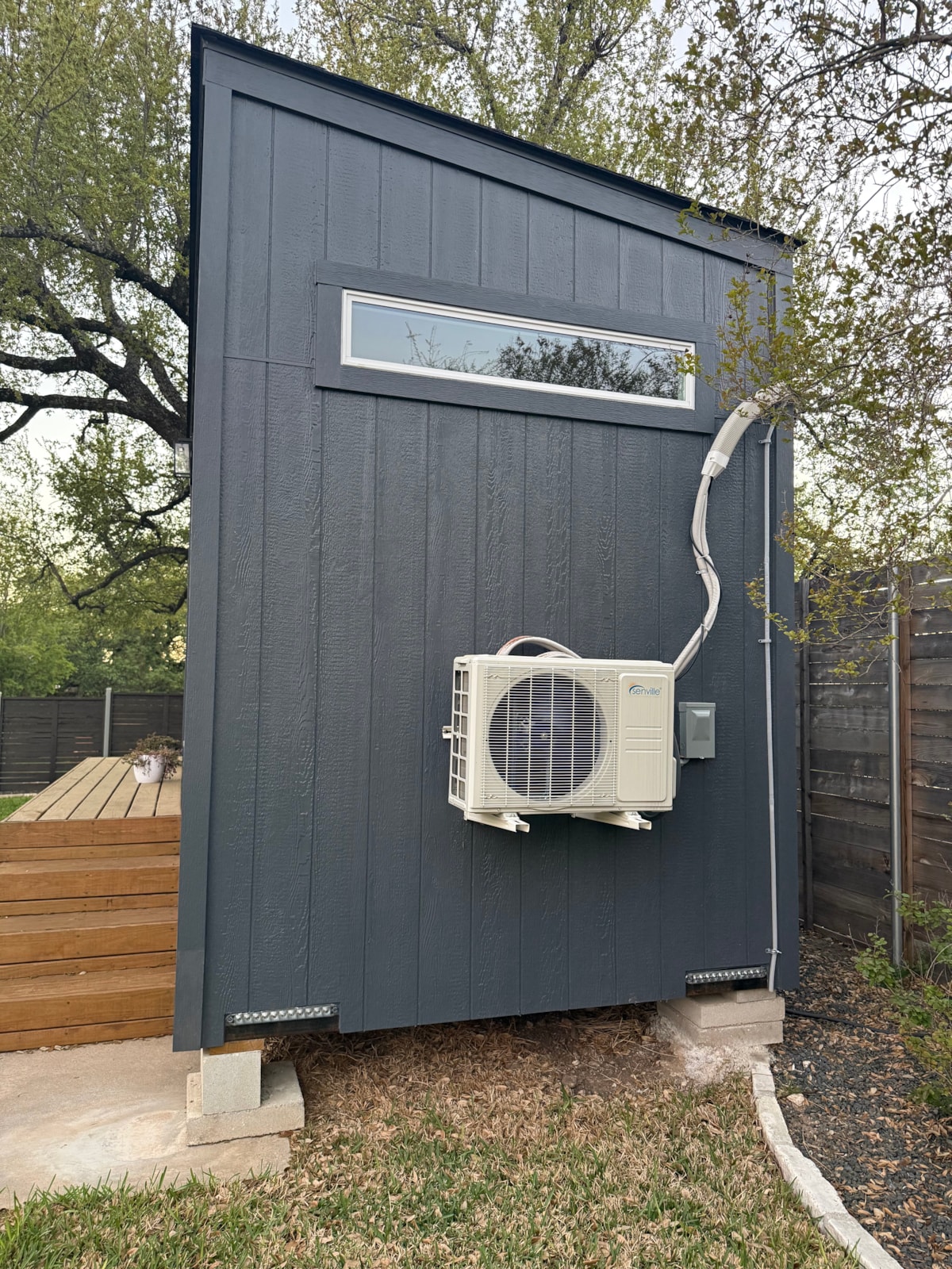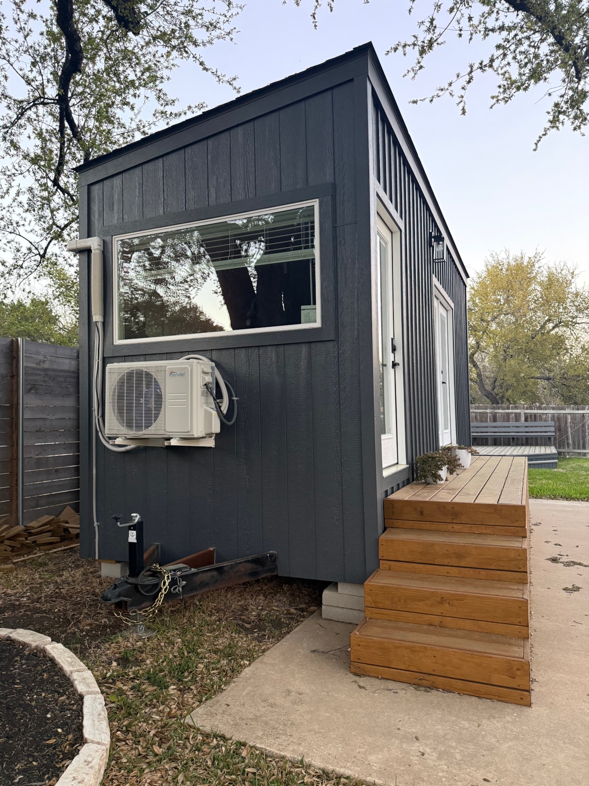 Fully powered (30-amp) tiny home was built custom for our living situation, needing an office and extra bedroom. One year later, we had to move and this is no longer needed. It's nearly new with incredible quality build specs and comes with the custom decking. It can be towed away on the trailer it's built on. Comes with clean title and registration. Pickup from 78759. No plumbing, only electric. Dual mini-splits with smartphone connectors. Can include the loft bed, if desired.