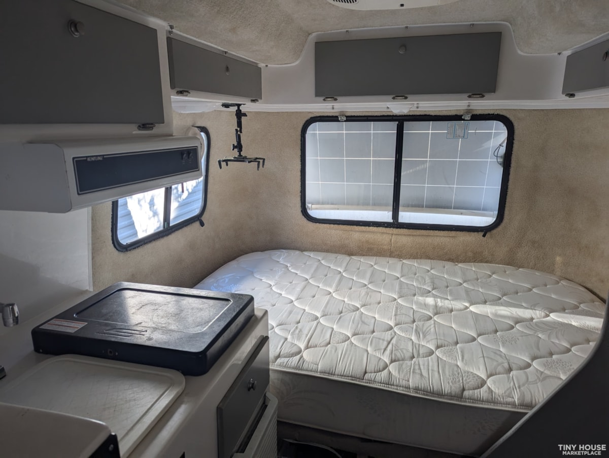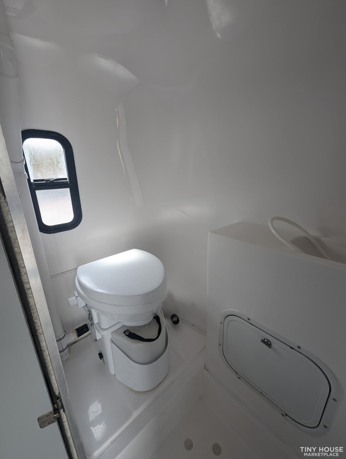 Off-grid ready, all you need is a water hookup. Complete with almost all upgrades, and then some! Starlink satellite internet optional, Nature's Head composting toilet, 525 watts of solar, propane heating, propane water heater, A/C (if plugged into shore power), 100 AH of lithium batteries, and 2000 watt inverter. Tires are in good condition, recently replaced and lightly used. Low mileage; was mostly used as a stationary cottage.