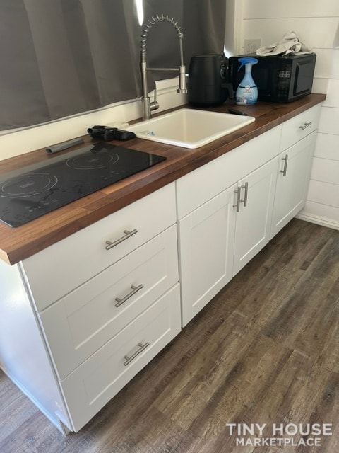 Excellent used condition with the following upgrades: 18 foot trailer, propane tankless water heater, skylight, Shaker kitchen cabinets, double pipe railing, exterior metal siding, under trailer metal barrier, roof ice/water shield, and interior/exterior pipe insulation.