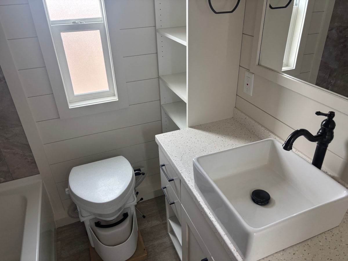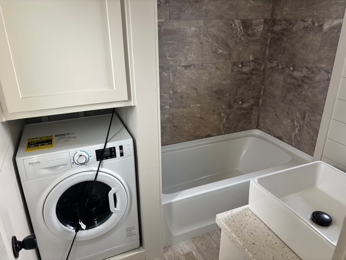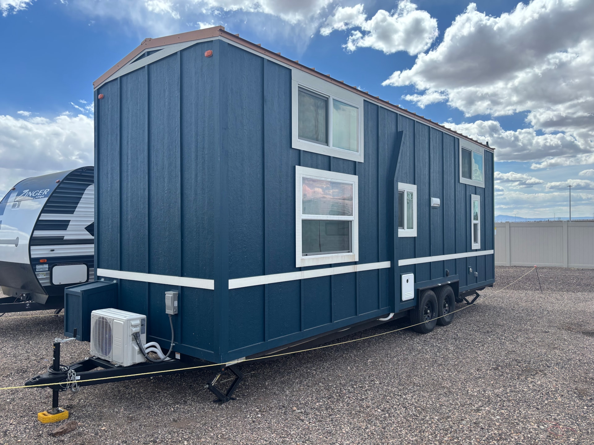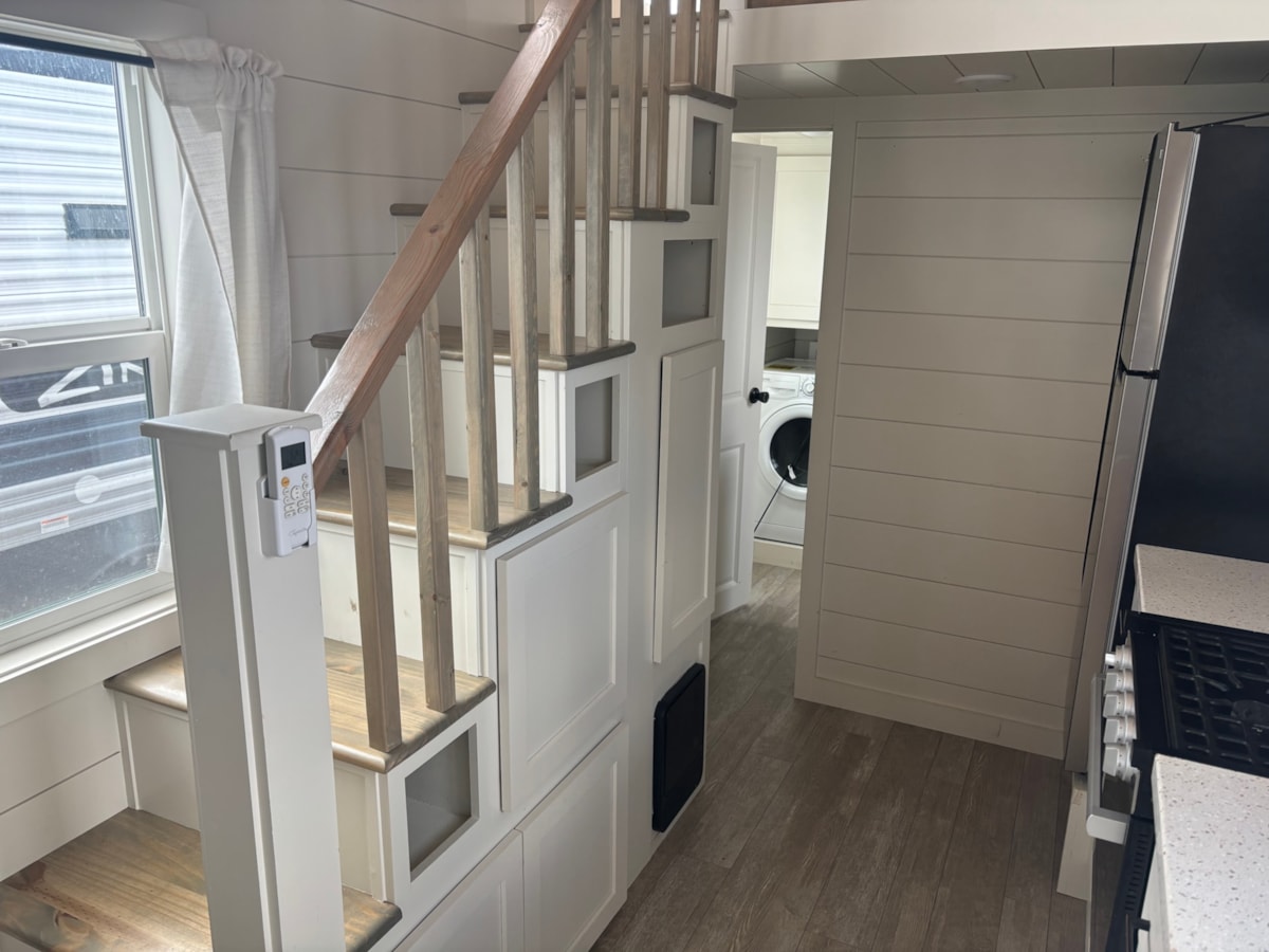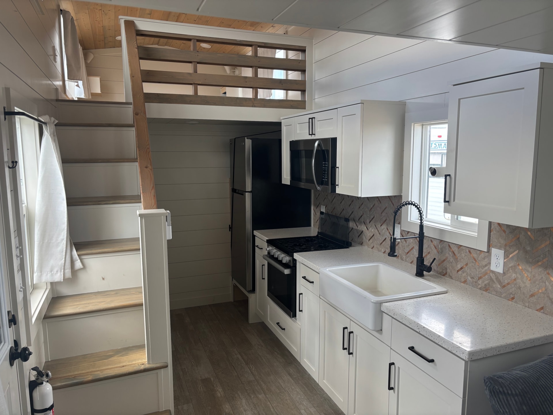 Professionally built 28' tiny home. This house was built in 2025 with custom updates and changes from the base model Dublin. It features a double loft layout with stairs to both lofts (no more ladders). The living room offers a spacious layout with a lot of under stair storage. The kitchen features a large farmhouse sink, convection microwave, propane oven and stove, and a large fridge freezer. There is plenty of counter space to prepare meals and more under stair storage. The bathroom has a bathtub (rare find in tiny homes), a 2-in-1 washer/dryer, and more storage still. Experience endless hot water with a propane instant hot water heater. This house comes in right around 12,000 lbs meaning that a stock 1-ton can pull it. It is 8.5' wide and 13.5' tall so no need for oversize permits. Just hook it up and go!