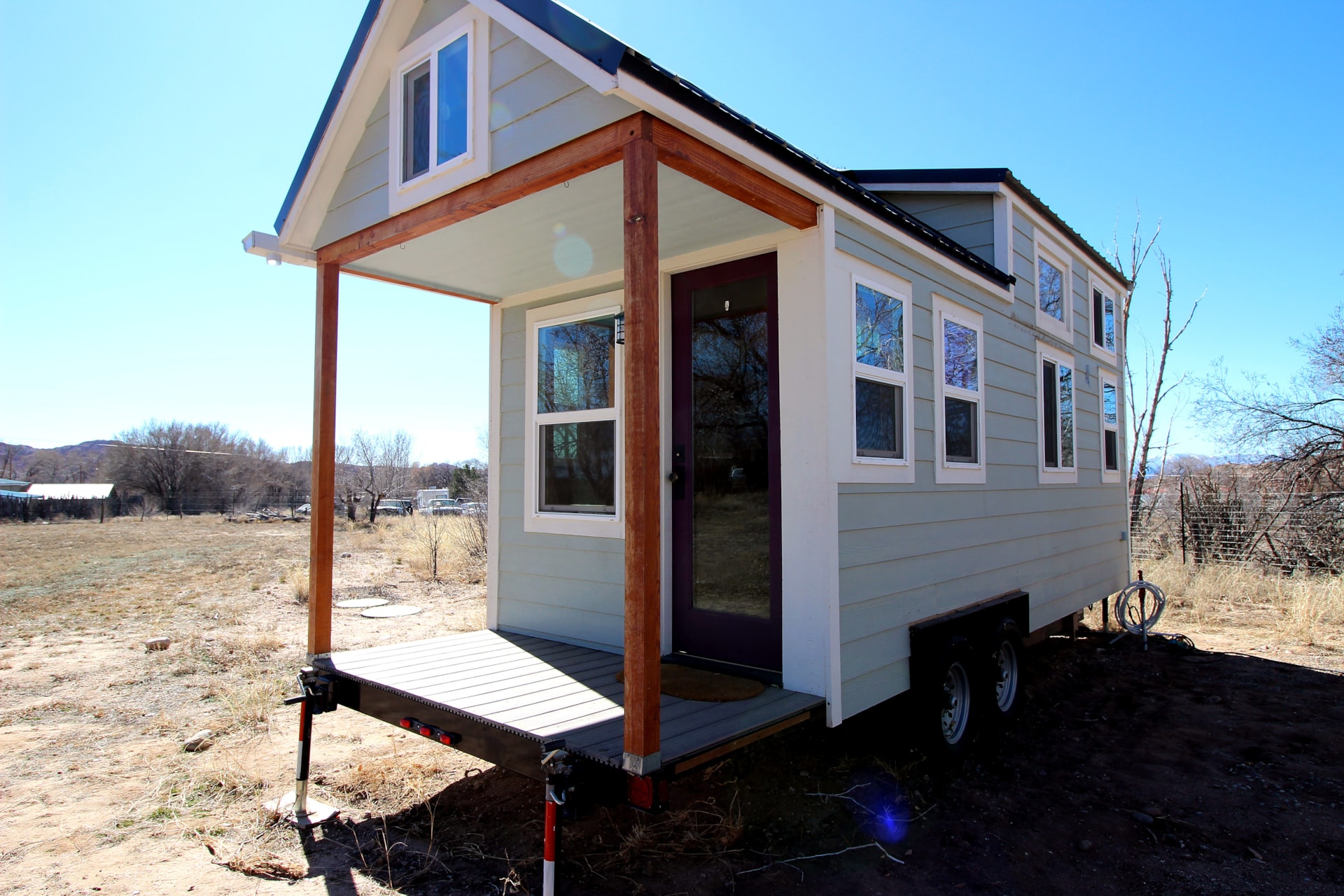 If you want it, the house also comes with 50’ and 100’ power extension cords along with adapters for 50amp hook up, rv hoses that are safe to drink from, jacks for additional stability, and chocks for the wheels.