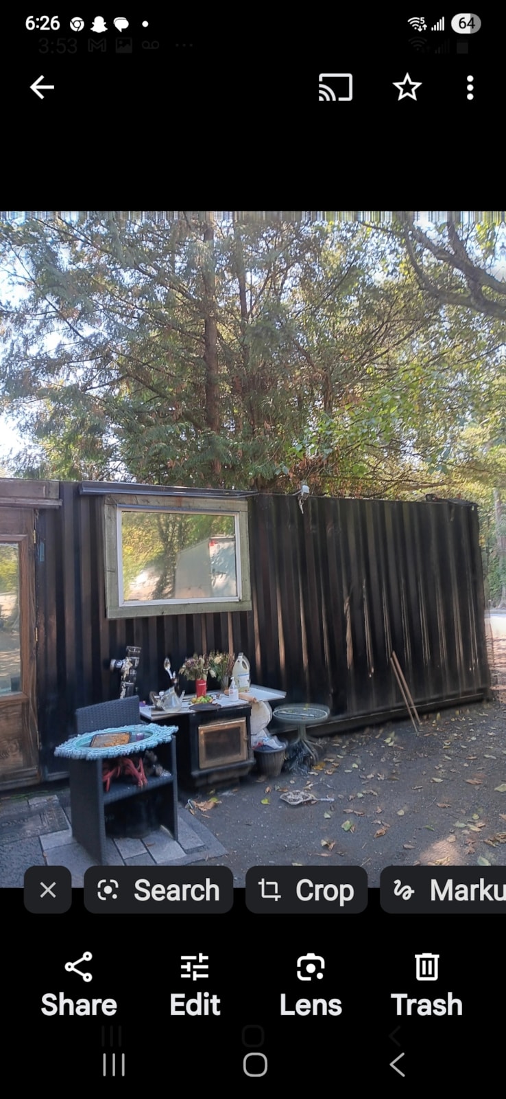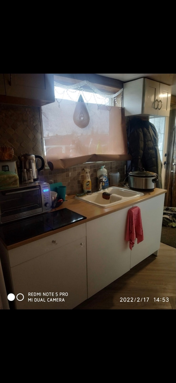40ft, 320sq ft. Overly insulted with two layers rock wool insulation. Cedar walls.Fully tiled bathroom, toilet huge walk in shower linear drain dryer brand new ikea cupboards and Cabinetry fridge freezer microwave air conditioner loft bed ,five windows.LED pot lighting usb outlet.