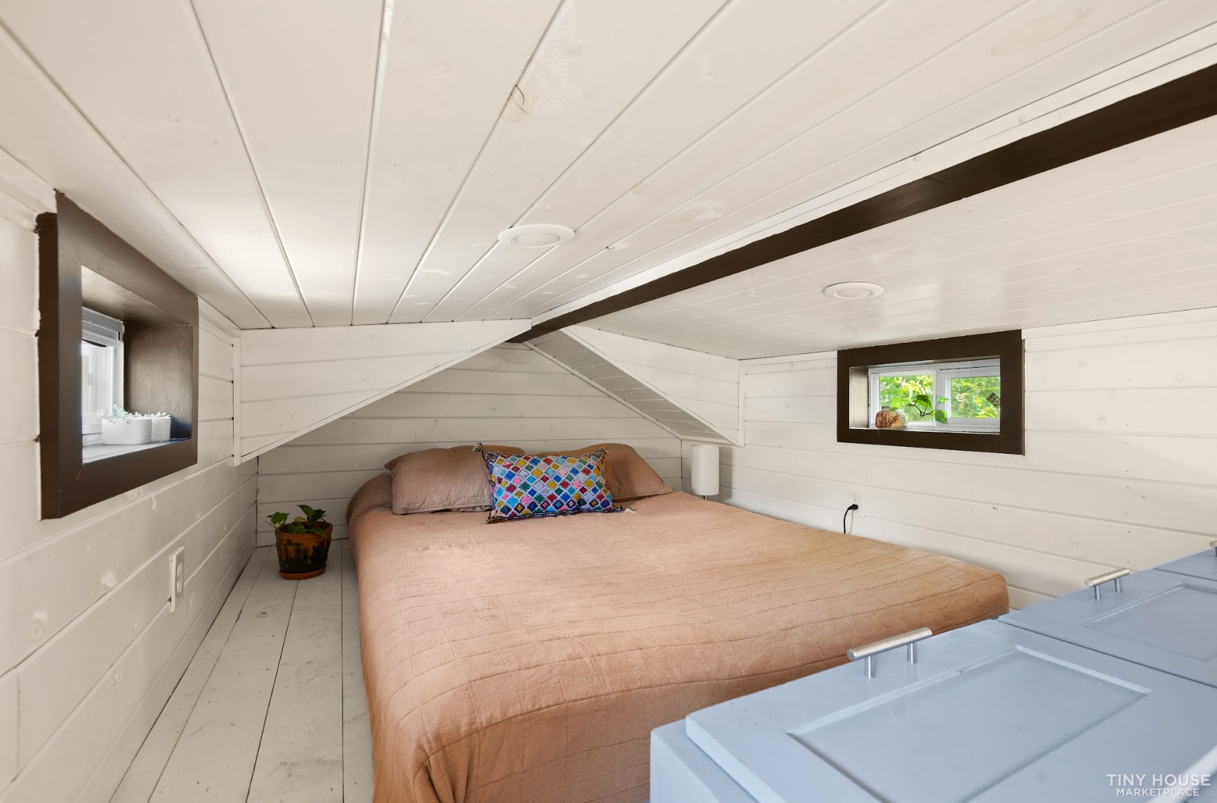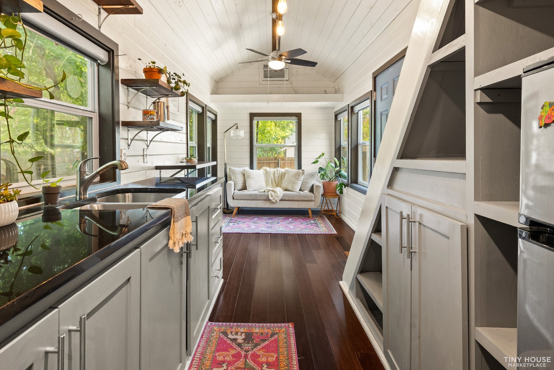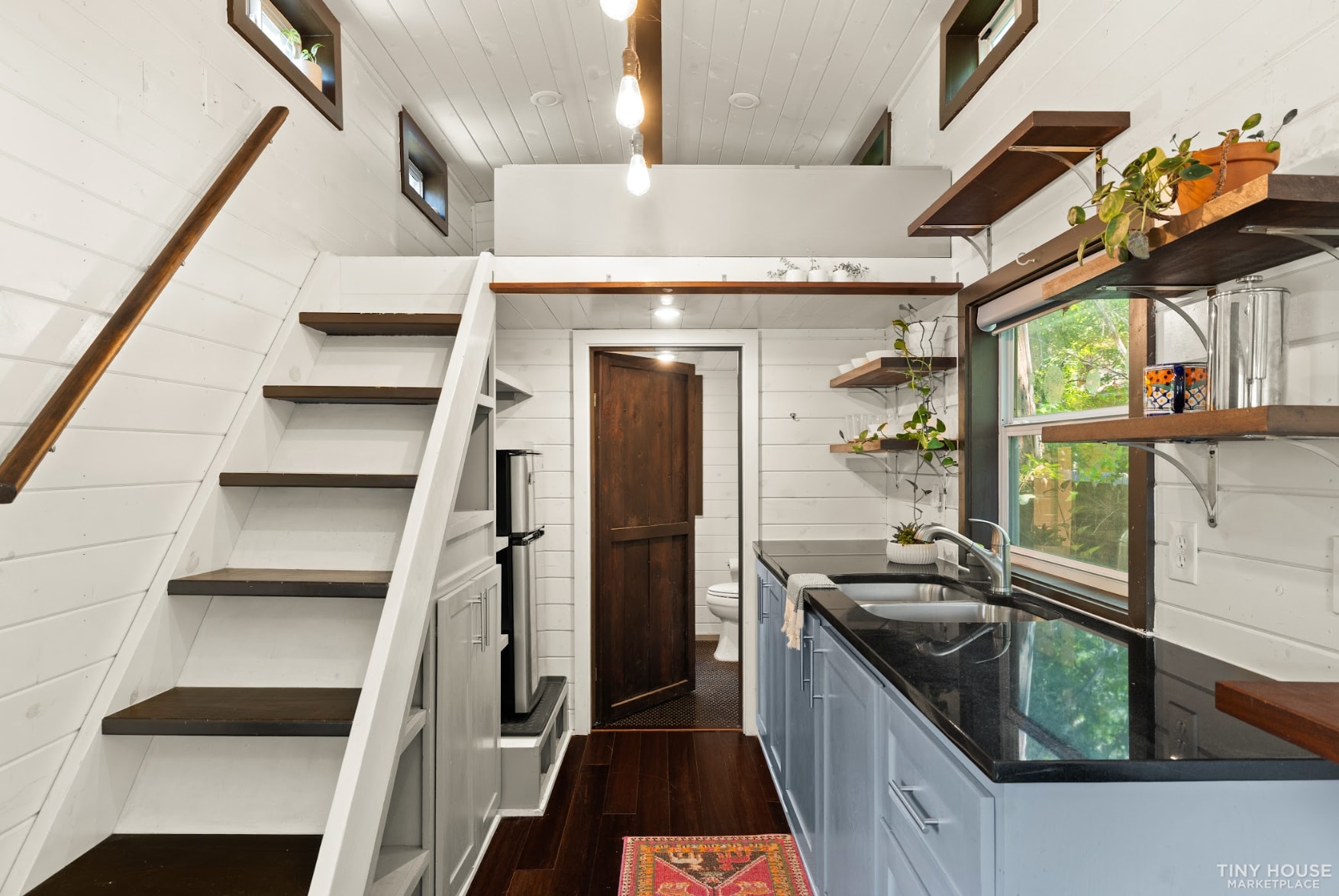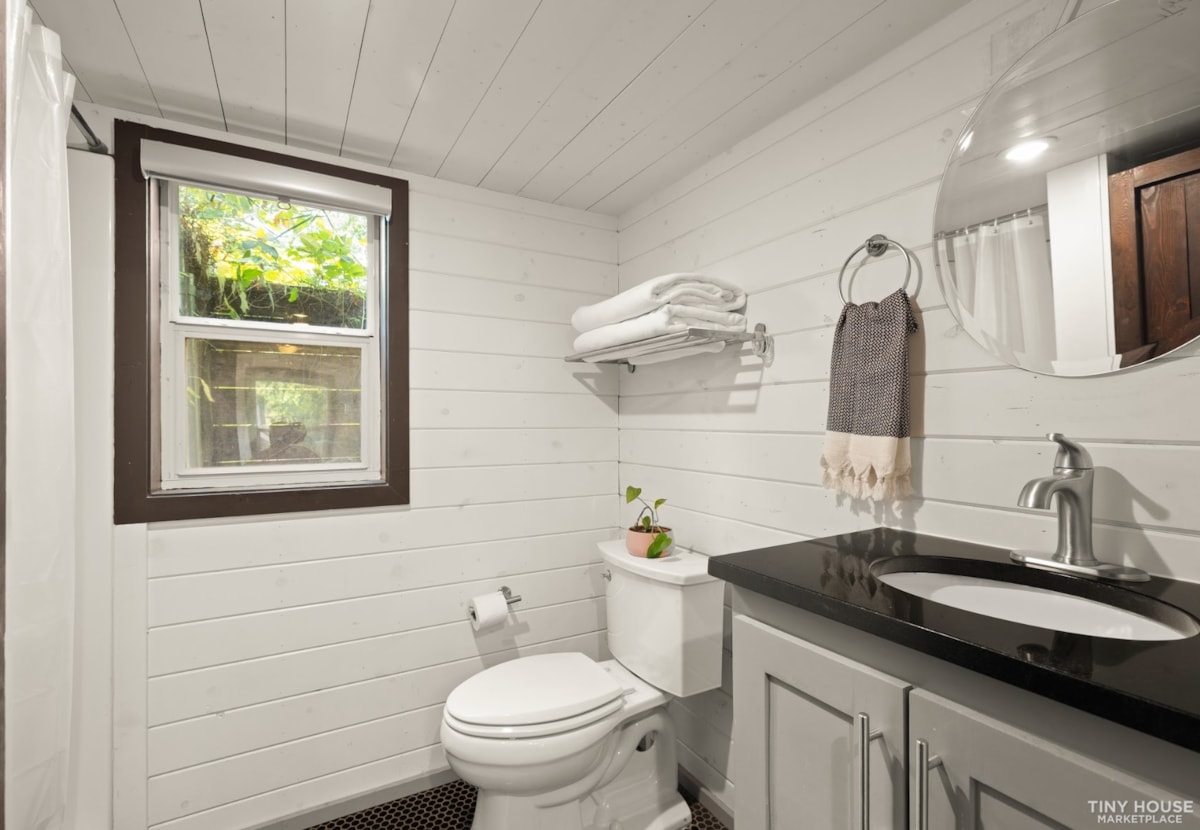 Enjoy a calm space with unique craftsmanship. This 315 square foot tiny home on wheels was designed and built by Austin Tiny Homes.