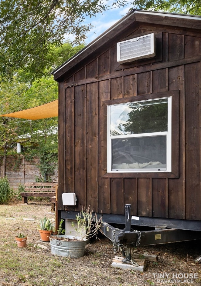 The tiny house on wheels is currently located/ hooked up in Austin, Texas, 78702.