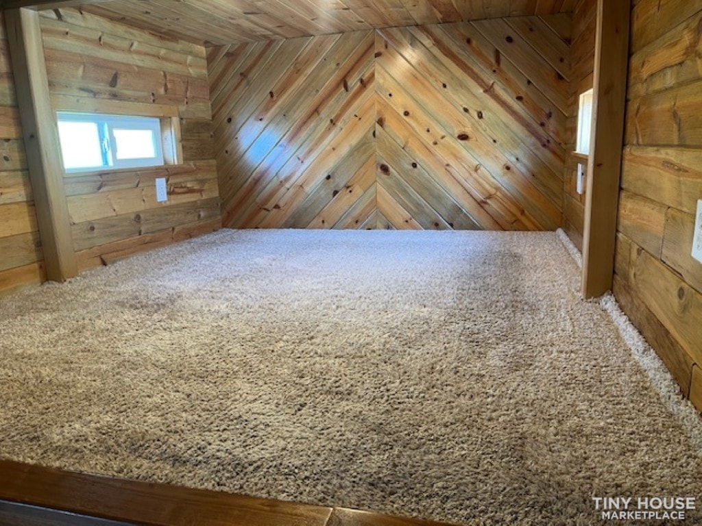 Upstairs there is a comfy carpeted sleeping loft and there is a storage loft as well.