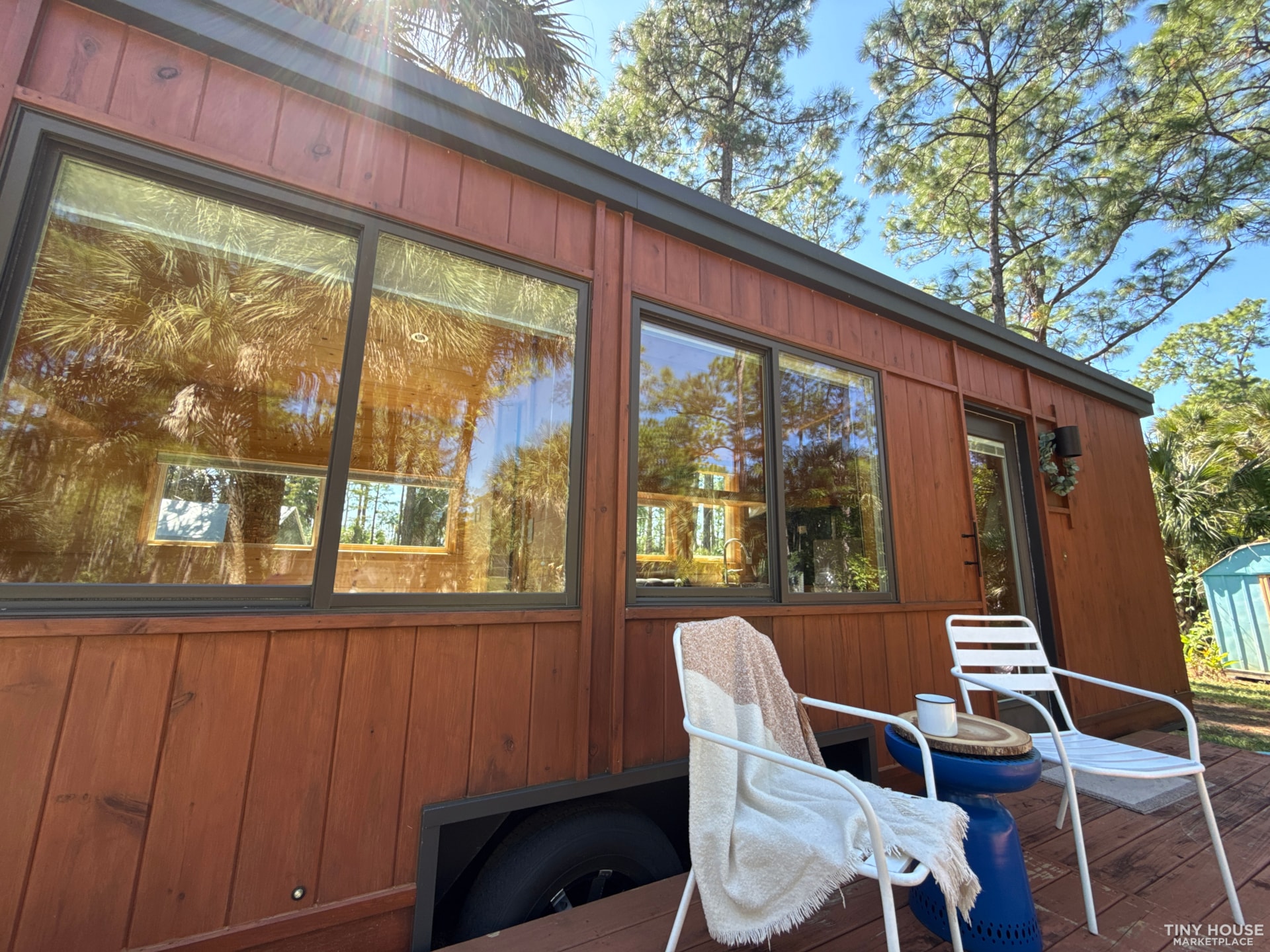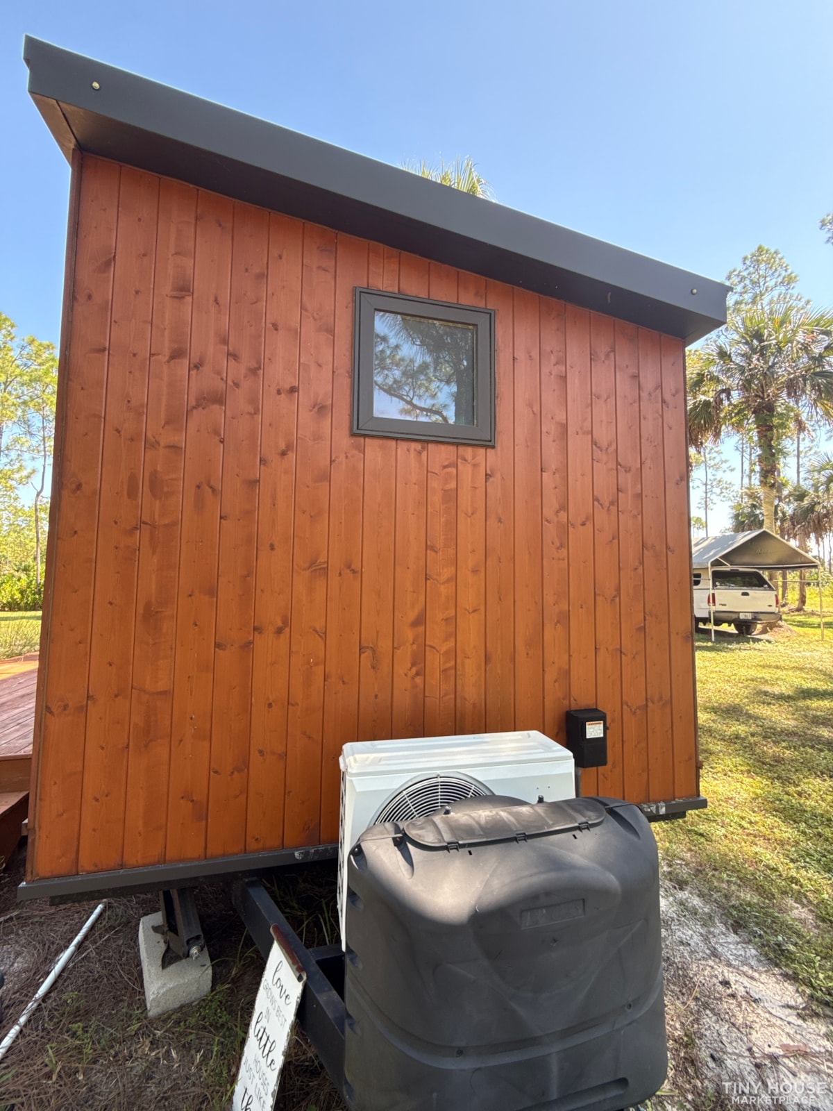 Though we have unit connected to electric and septic systems, it is solar-ready should new owner desire such an upgrade. New units of this model have average cost of $74,000 (Boho XL base price is $59,720). This one is in Naples, Florida. Tires, jacks, hitch all perfect. Manuals and original documentation from purchase will be included. Current deck is not directly attached to home. House is fully travel ready to your property or your next adventure.