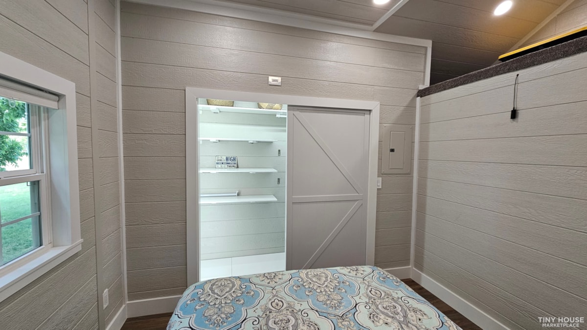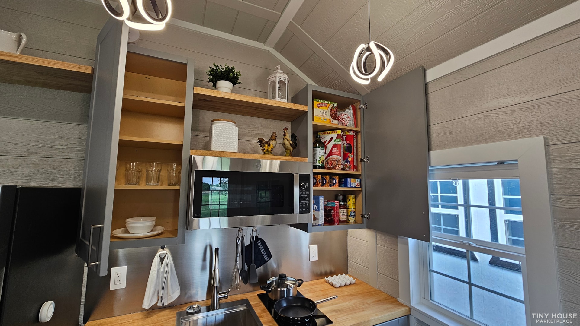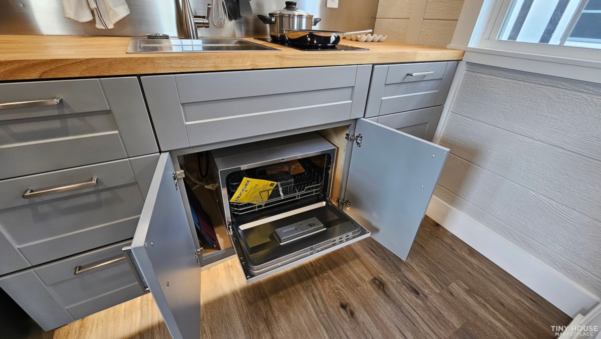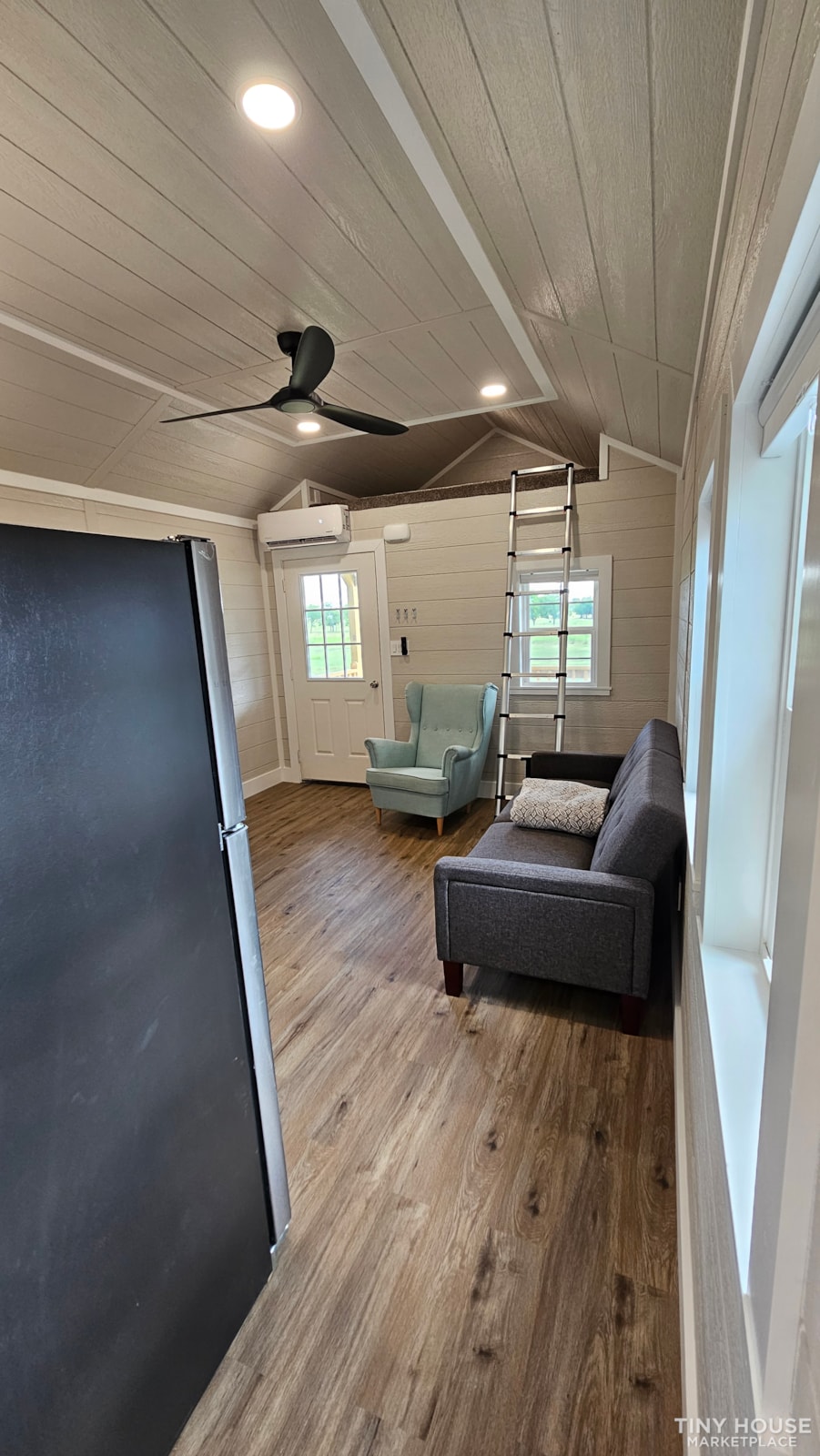 Step into a tiny home that proves small can still mean spacious, comfortable, and secure. Designed with modern living in mind, this home includes all the essentials you’d expect in a traditional house: a washer and dryer combo, full-size refrigerator, electric stove, convection oven, and even a dishwasher.