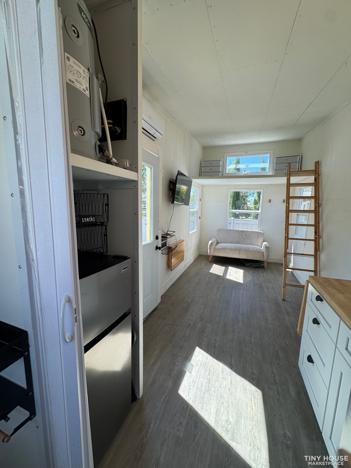 This home comes full with a kitchen, bathroom, loft space, full of natural light. Electric water heaters, 2 lithium batteries, mini split and we can include the fridge and television if you wish.
