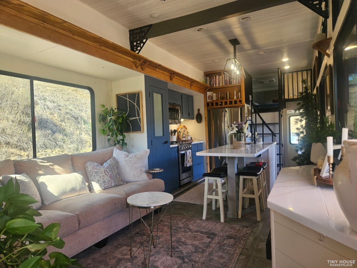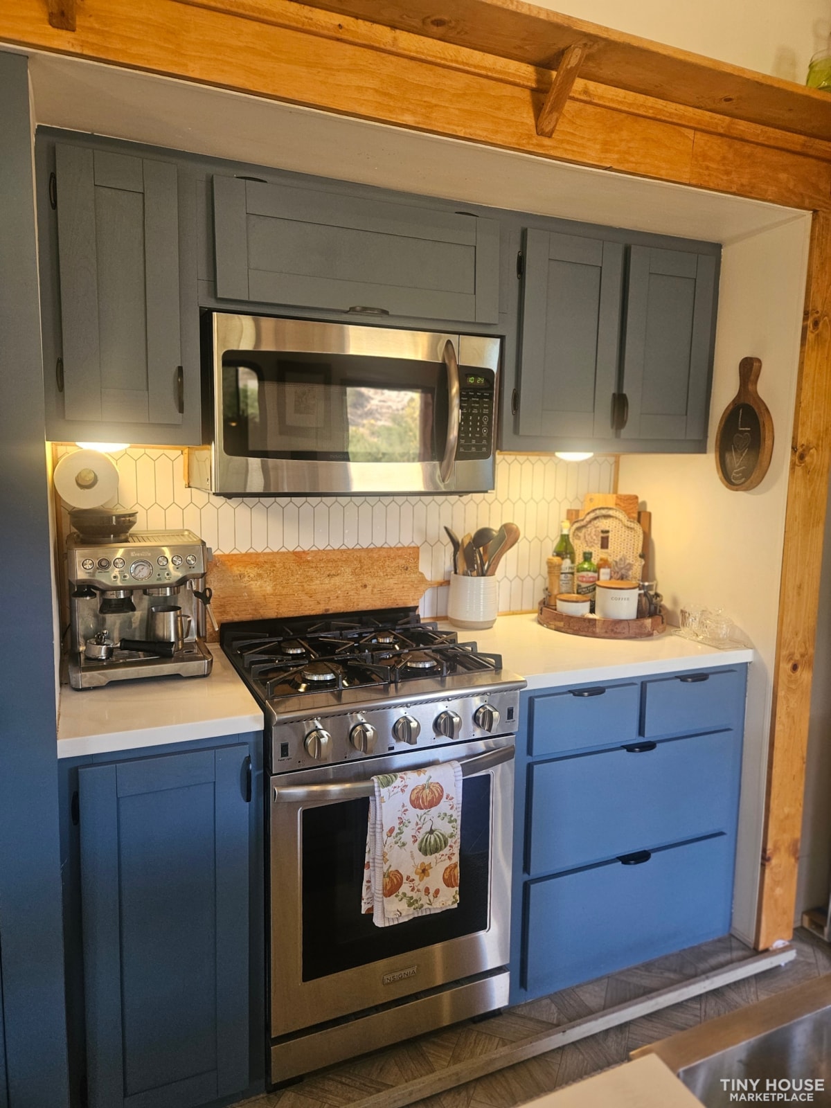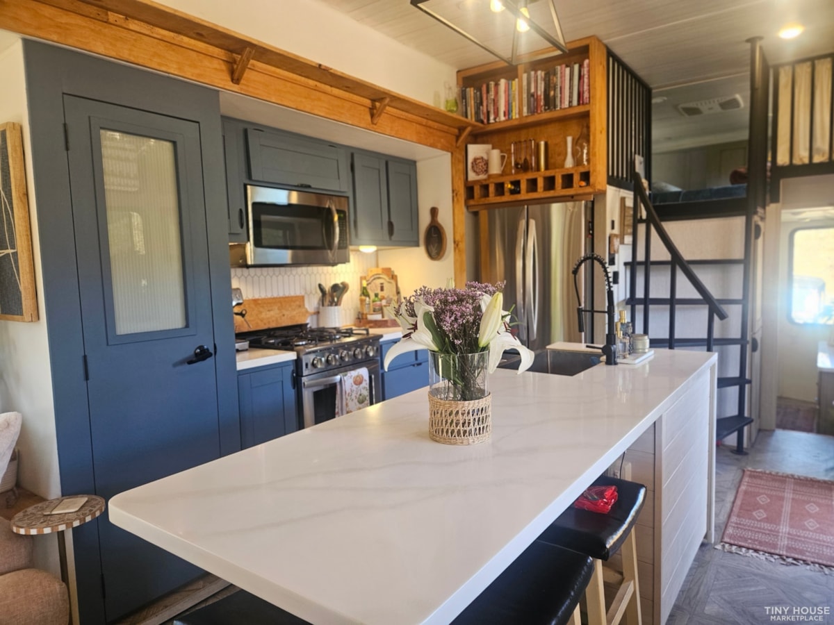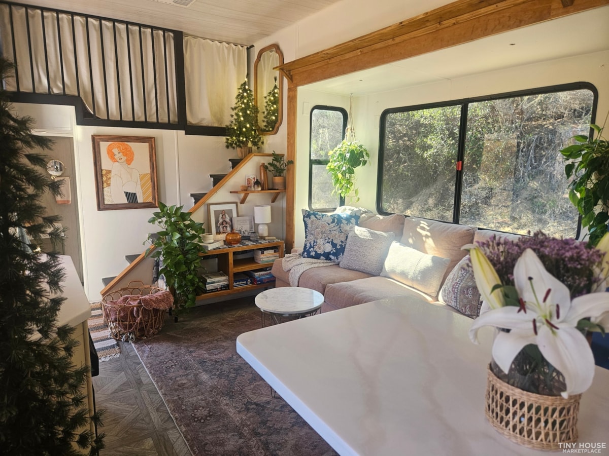 Inside, you’ll find a spacious layout with two lofts, a primary bedroom with a queen bed, and thoughtful design upgrades including updated paint, cabinetry, and a custom couch. The kitchen and living areas are fully equipped, and the home features two electric fireplaces and a telescoping TV. The full bathroom includes a stackable washer/dryer, making this tiny home completely self-sufficient.