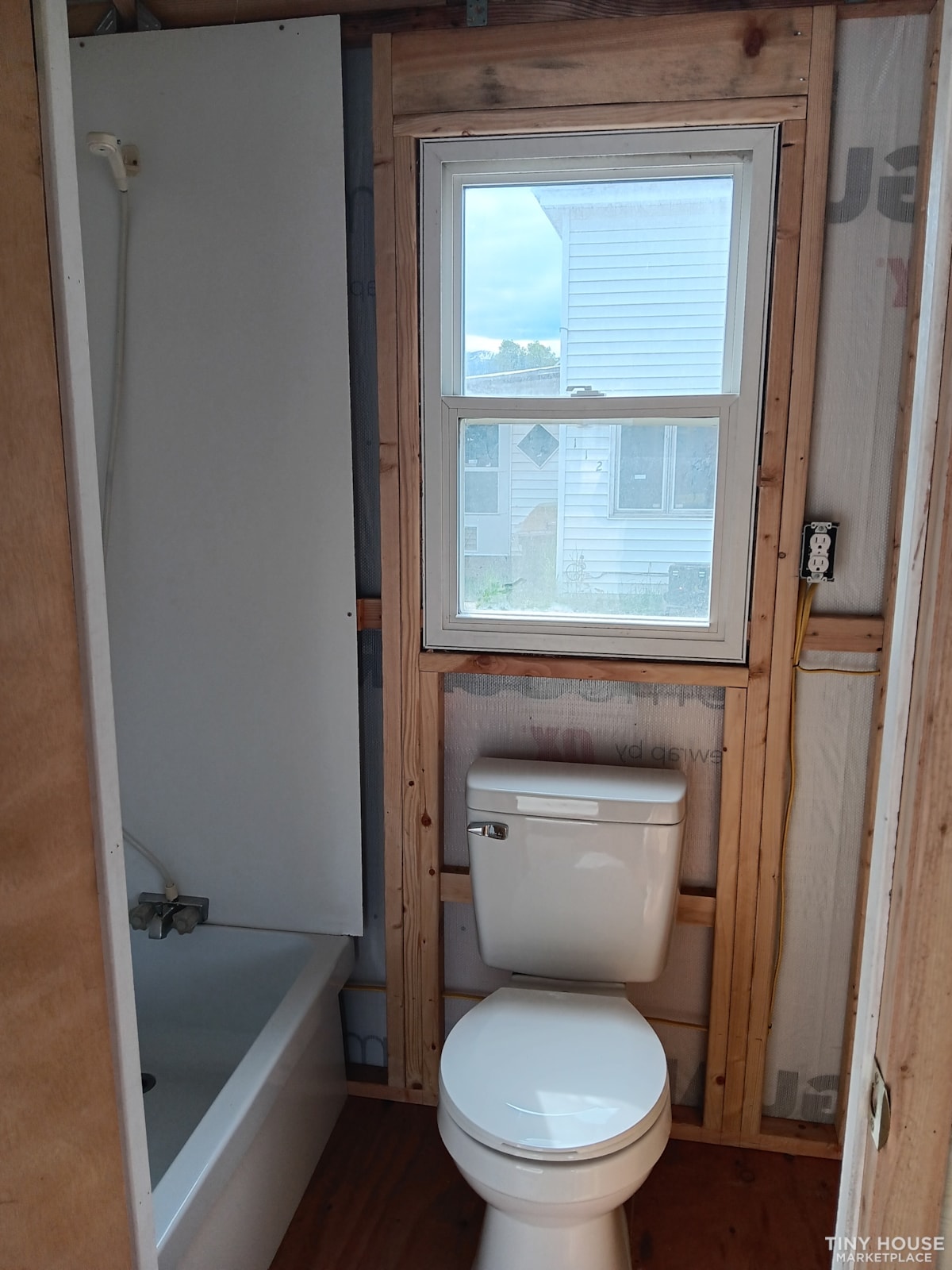 This home also comes with a full electric service installed with exterior lighting, interior lighting, and with plenty of wall outlets for all your needs. The easy power plug and play is set up with a standard heavy duty 50 amp exterior plug in and a 100 amp breaker box panel with extra space to add anything if ever wanted. The optional interior wall coverings that can be completed by purchaser is a big cost saver! that gives an open canvas to the purchaser to do whatever they prefer. This home is priced very affordable and accordingly.