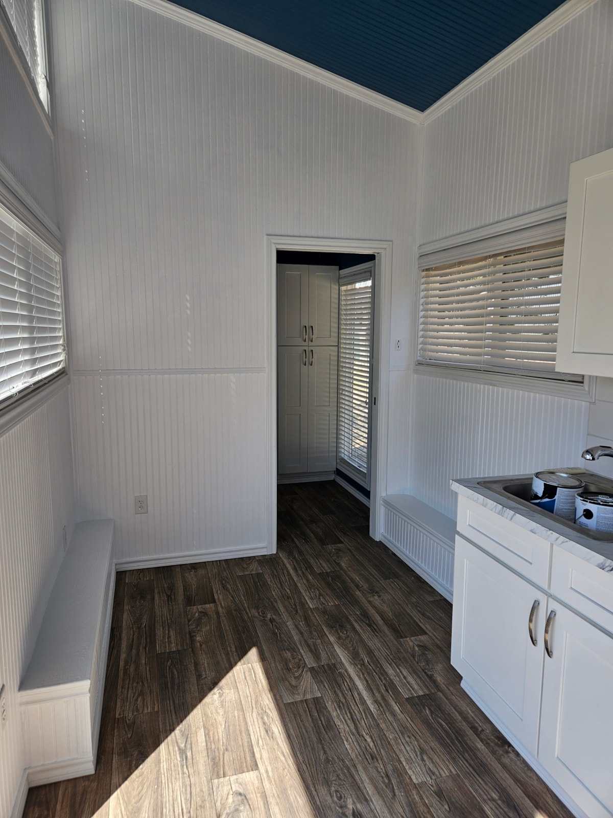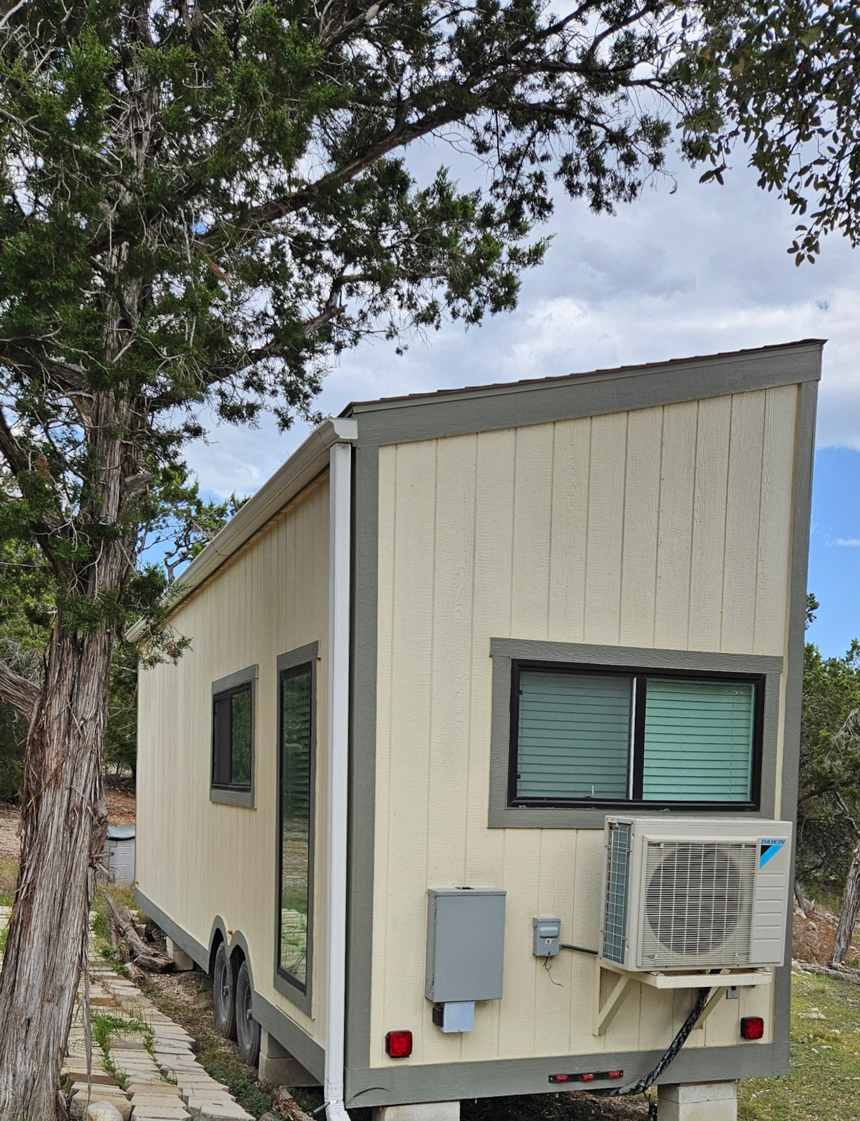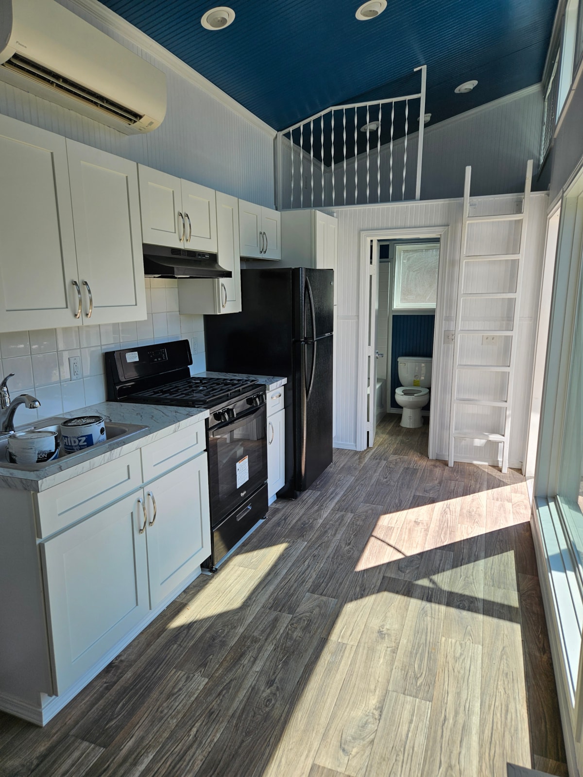 What we love most about this 'Sunny Skillion' is the windows—light absolutely fills the space. The large picture window is perfect for admiring the outdoors (our view is currently a lake!). We are the original owners and had big plans for this home after purchasing it new in 2022. It was delivered and set up, and a move-related leak was professionally repaired, but life simply got in the way.