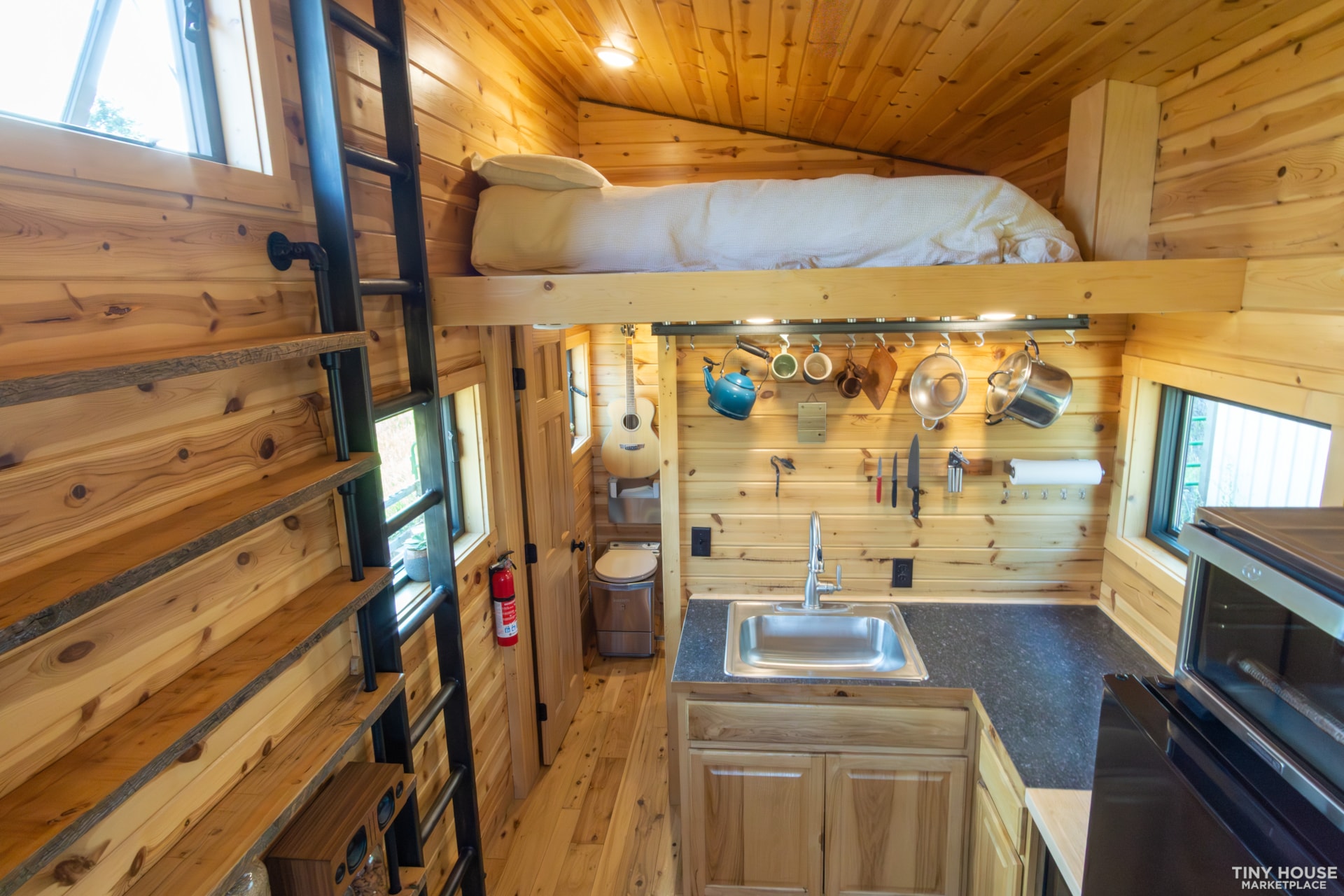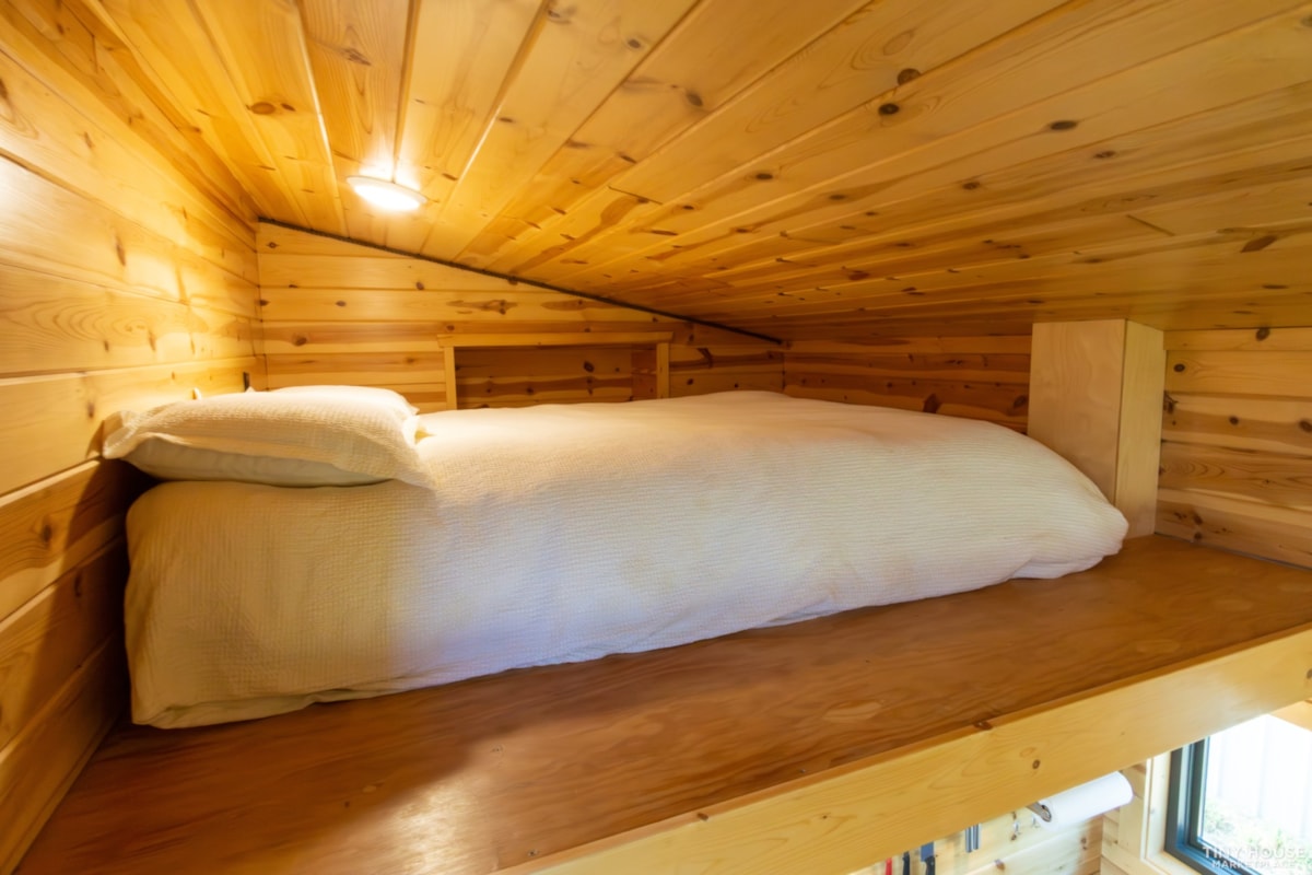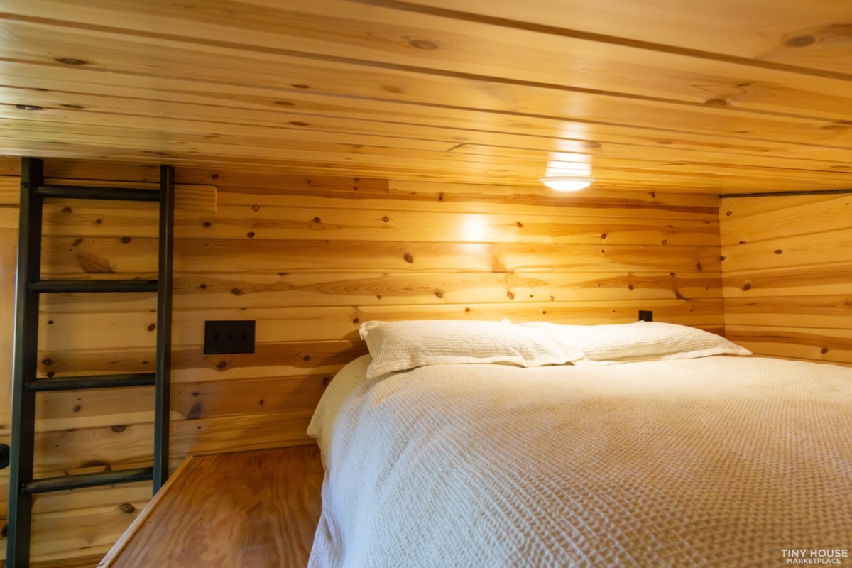 Layout: Two lofts (one fits king bed with closet, one fits twin/storage), tongue-and-groove interior, high ceilings, hardwood floors, plenty of windows.